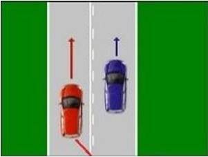 De bestuurders die rijden op de vrije rijstrook moeten vlak voor de versmalling beurtelings voorrang verlenen aan één invoegende bestuurders. In geval het rijden in zowel de linker als in de rechter rijstrook wordt verhinderd, moet eerst voorrang worden verleend aan één bestuurder op de rechter rijstrook en daarna aan één bestuurder op de linker rijstrook.